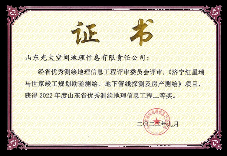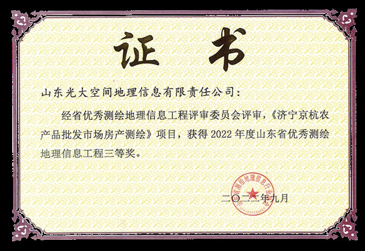 近日,济宁市红星瑞马世家、京杭农产品批发市场房产测绘项目,被评为山东省测绘地理信息优秀工程,这是济宁市持续提升房产测绘成果水平所取得的新成果。